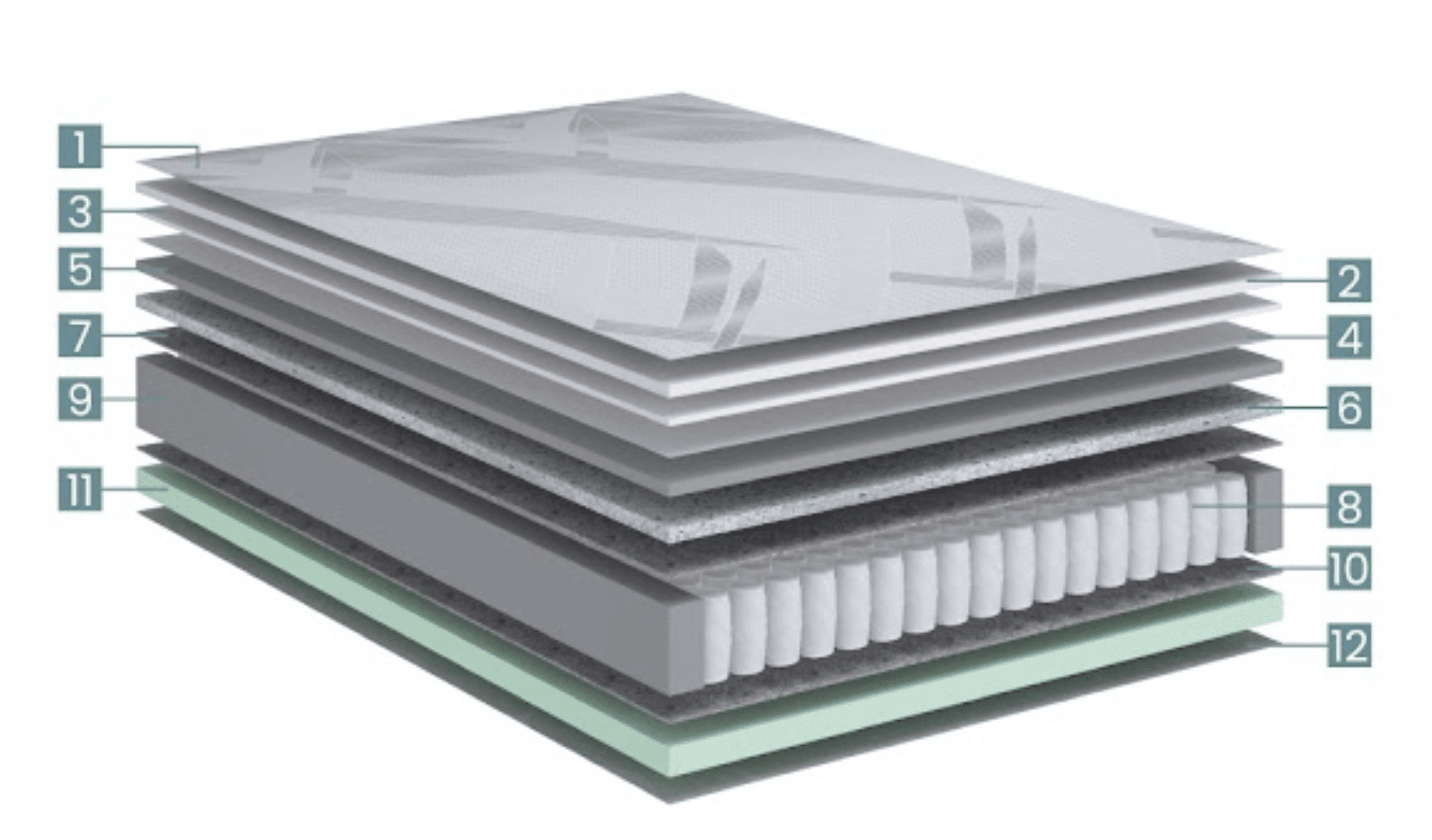 Este sistema de resortes está construido en forma de barril y empaquetado individualmente en una carcasa TNT (no tejida), lo que da como resultado un soporte activo del cuerpo. Tiene doble soldadura, lo que crea más espacio entre los resortes brindando una mayor ventilación. También asegura que el movimiento que ejerce una persona no afecte al lado opuesto, es decir, a la otra persona. Hay 180 resortes/m? y un calibre de acero de 2,0 mm. Resistencia de hasta 120 kg individual.